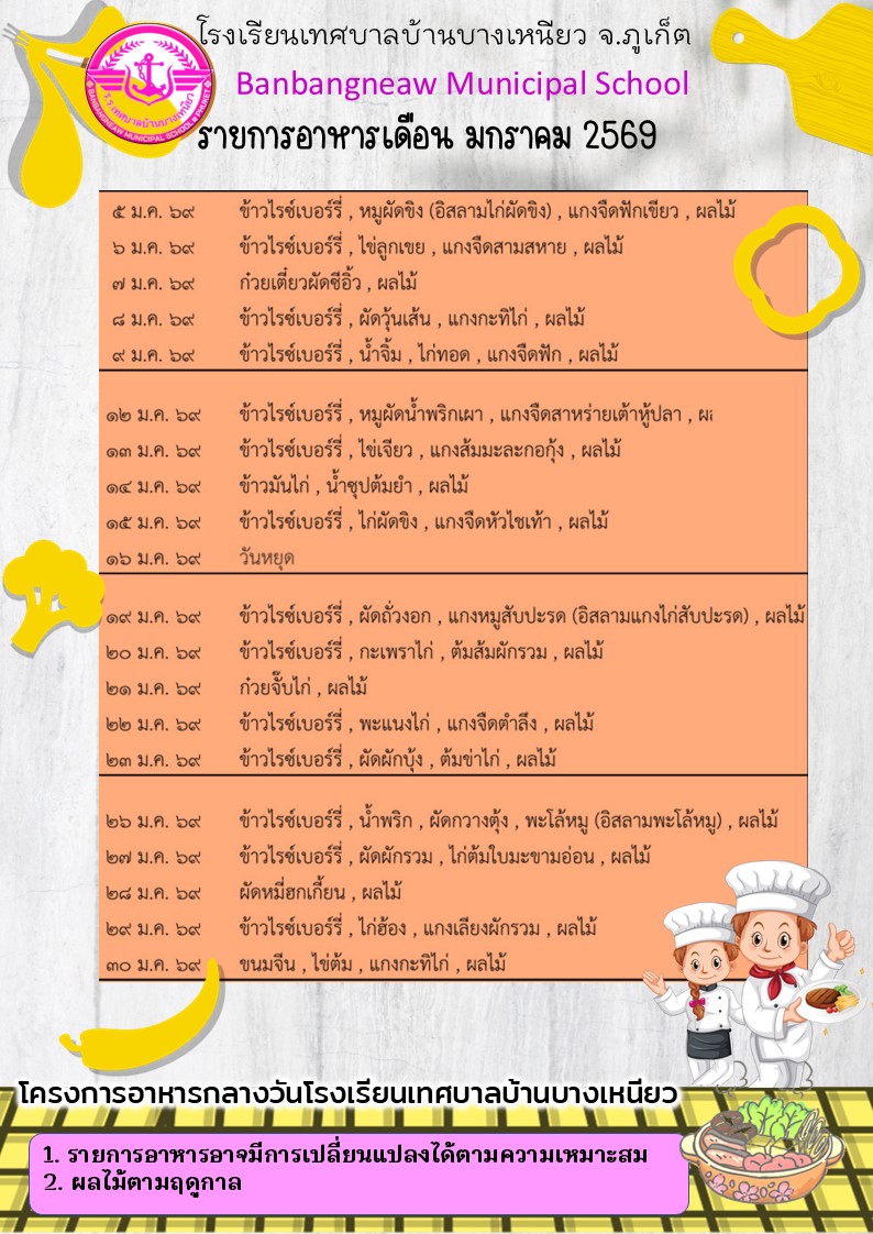 รายการอาหารกลางวัน เดือนมกราคม 2569