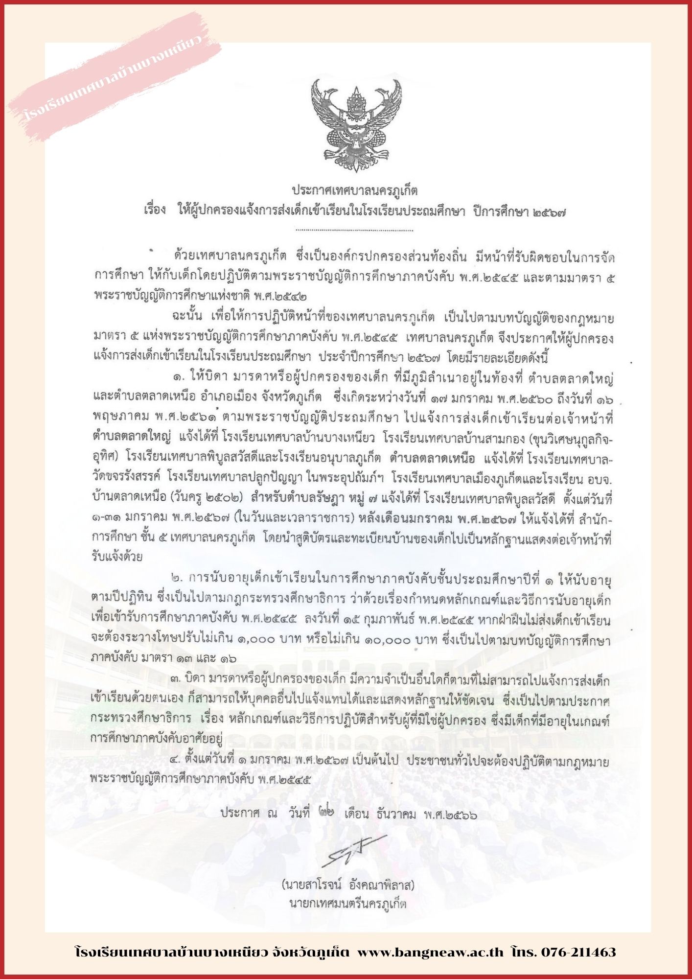 ประกาศเทศบาลนครภูเก็ต