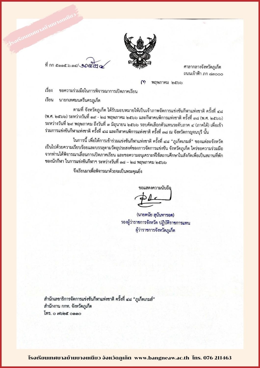โทรศัพท์ ๐๗๖-๒๑๑๔๖๓ โทรสาร ๐๗๖-๒๒๓๕๑๙