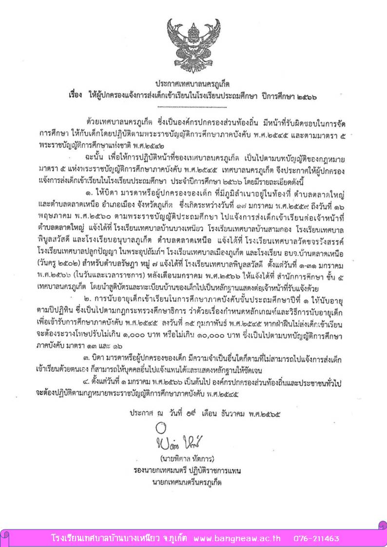 ประกาศการรับสมัครนักเรียนชั้น ป.1 ปีการศึกษา 2566