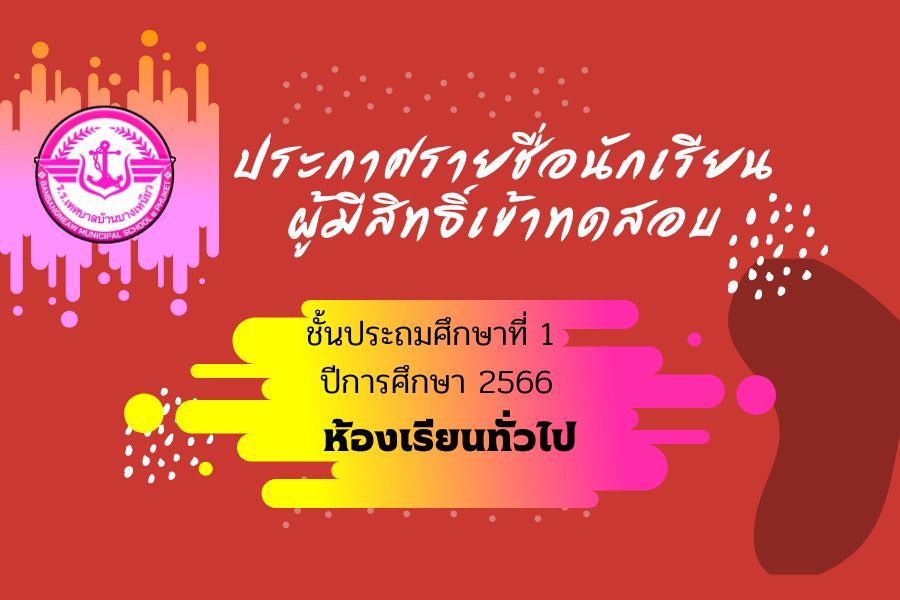 ประกาศรายชื่อนักเรียนมีสิทธิ์เข้าทดสอบ ชั้นป.1/2566 (ห้องเรียนทั่วไป)